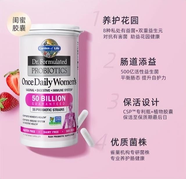 传统益生菌产品多聚焦肠道健康,但随着临床研究的深入,细分赛道正不断拓展。例如,美国品牌Garden of Life推出的女性专属益生菌,添加了罗伊氏乳杆菌E1E和鼠李糖乳杆菌Lr-32。两项独立研究显示,这两种菌株可维持阴道菌群平衡,降低泌尿系统感染复发率。产品上市后,迅速占据亚马逊女性健康品类榜首。